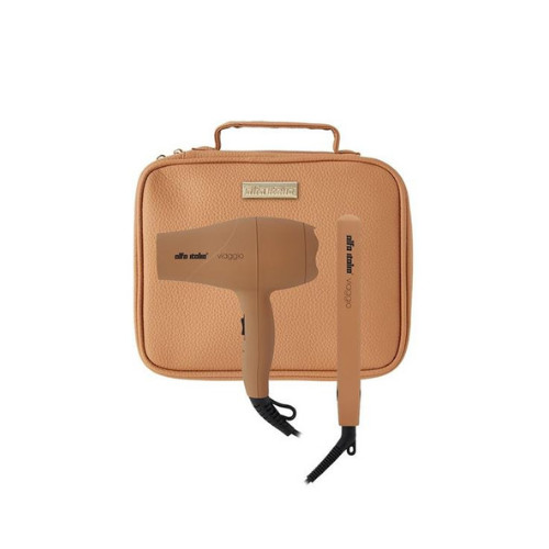 Alfa Italia viaggio travel styling kit is a timeless collection features deceptively powerful mini hair styling appliances housed within a leather look carrycase.
