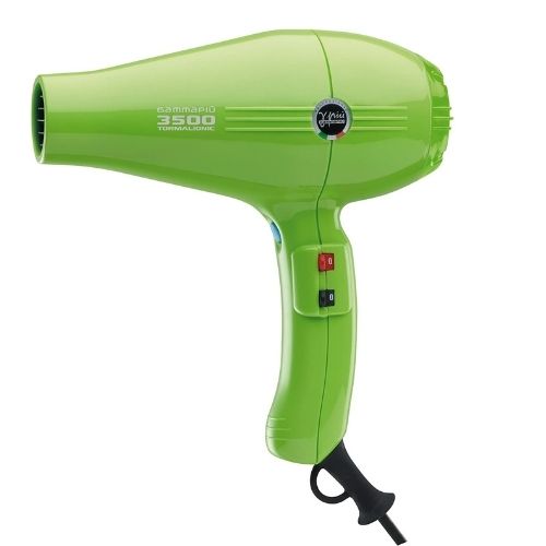 Gamma Piu 3500 Tourmalionic Hair Dryer, this powerful 3500 dryer has a 2500 watt motor of power generating a drying force with its 126m³/h of air flow, which makes it one of the most powerful dryers on the market. All that power is squeezed into a compact 20.5-cm-long body and a low noise level of 71 decibels.