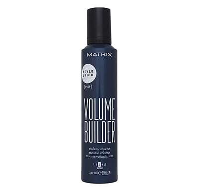 Matrix Style Link Volume Builder Volume Mousse is a lightweight, airy-textured mousse formulated to boost volume, without leaving behind any greasy residue. The mousse delivers body and bounce with a medium hold for long-lasting, professional results.