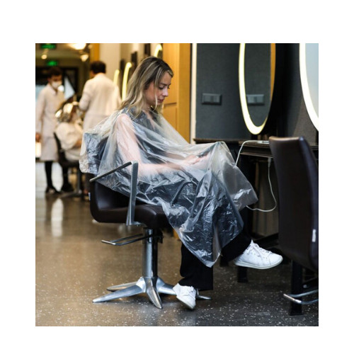 These gowns are to be thrown away after each client use to provide ultimate salon hygiene. Their long length covers the front of the client to protect clothing during service.