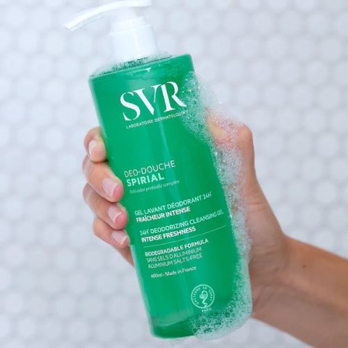 SVR Spirial Déo-Douche is an intensely fresh deodorizing cleansing gel suitable for all skin types, even the most sensitive.