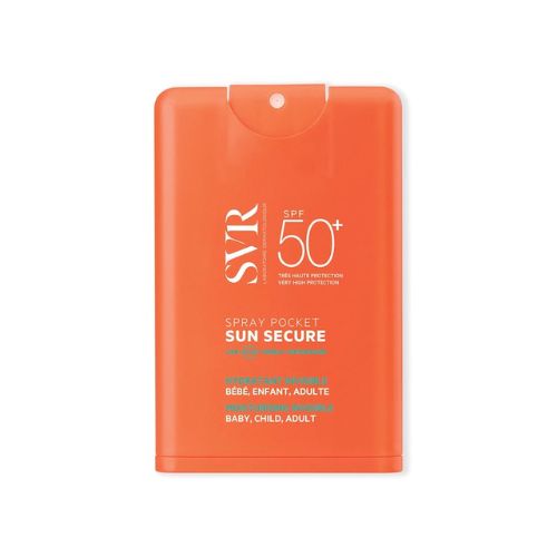 Travel-size, SVR Sun Secure Spray Pocket SPF50+ is an invisible sun spray with very high protection.